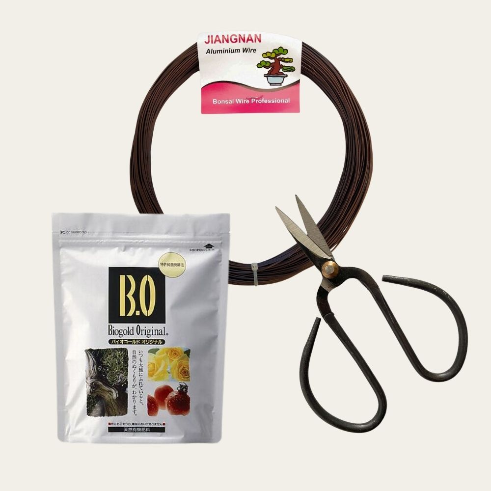 Hier vindt u al onze verzorgingsproducten voor bonsais, zorgvuldig samengesteld om uw boom in topconditie te houden. We bieden een breed assortiment aan essentiële producten, zoals hoogwaardige voeding, speciale bonsaigrond, stijlvolle en duurzame potten, en professioneel gereedschap. Of u nu net begint met bonsai of al een ervaren verzamelaar bent, onze producten helpen u bij het verzorgen en vormen van uw bonsai, zodat deze gezond blijft en prachtig groeit.